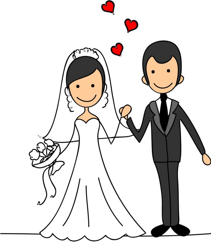 Cartoon Wedding Groom Bride Holding Hands 6